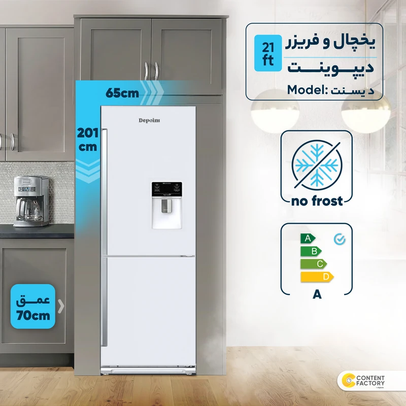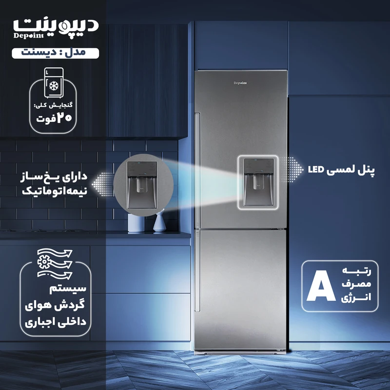 یخچال و فریزر دیپوینت مدل DECENT دارای پهنای ۶۵ سانتیمتر، عمق ۷۰ سانتیمتر و ارتفاع ۲۰۱ سانتیمتر است. ارتفاع زیاد دستگاه ظاهری کشیده به آن بخشید و تاثیر مثبتی در گنجایش کلی آن داشتهاست به شکلی که گنجایش این یخچال فریزر حدود ۳۹۶ لیتر است که سهم فضای یخچال ۲۵۶ لیتر و سهم فضای فریزر ۱۴۰ لیتر است